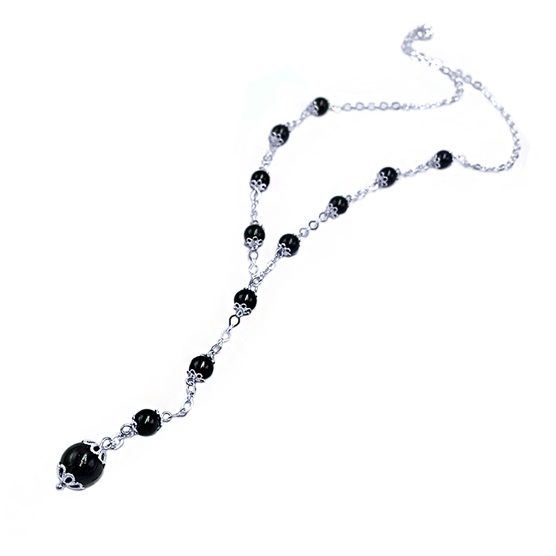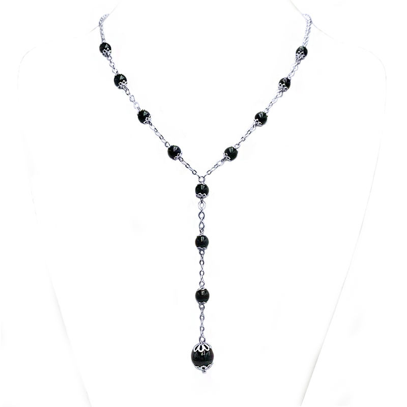 Χειροποίητο κολιέ με Μαύρη Τουρμαλίνη (0,6cm και 1,0cm) από ασήμι  925°.