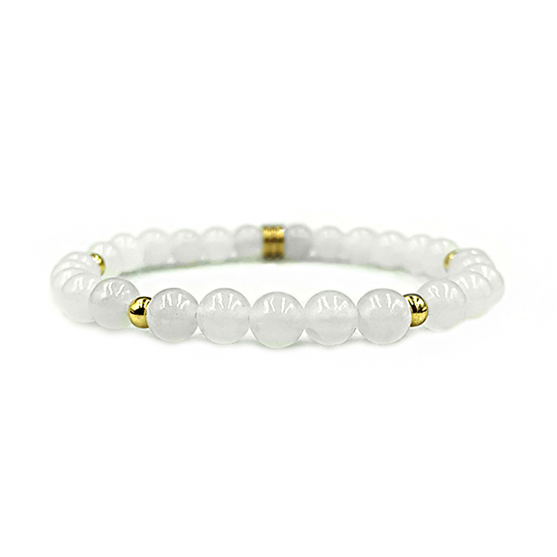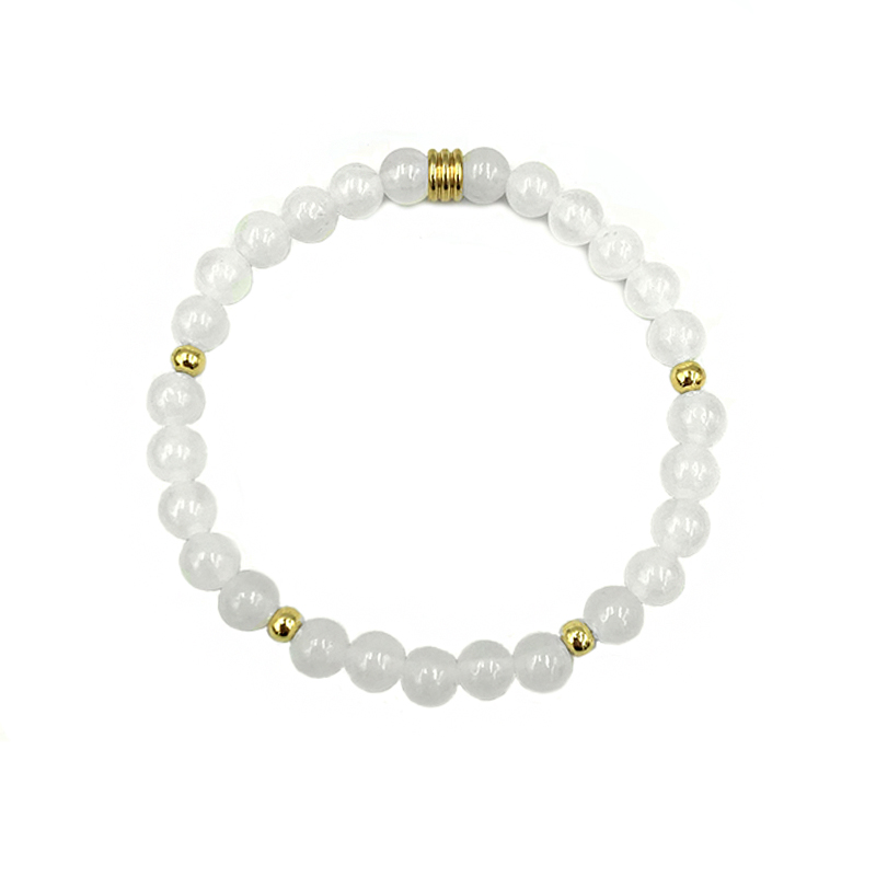 Χειροποίητο βραχιόλι Λευκός Χαλαζίας 6mm με στοιχεία από επιχρυσωμένο ατσάλι.
