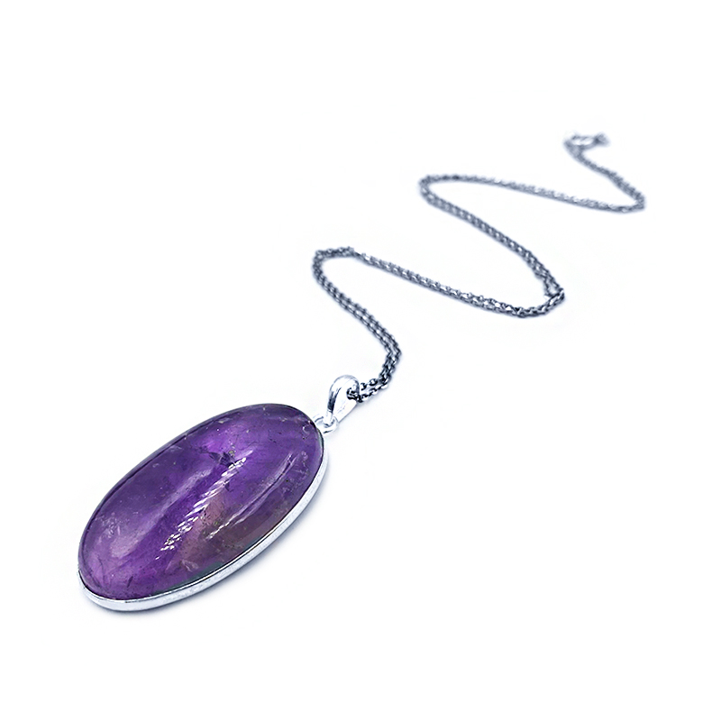 Μενταγιόν Αμέθυστος (οβάλ 4 Χ 2,3cm) από ασήμι 925° – Ο λίθος της ηρεμίας και της πίστης