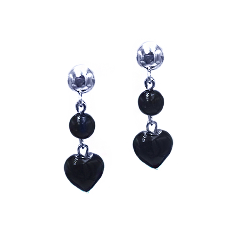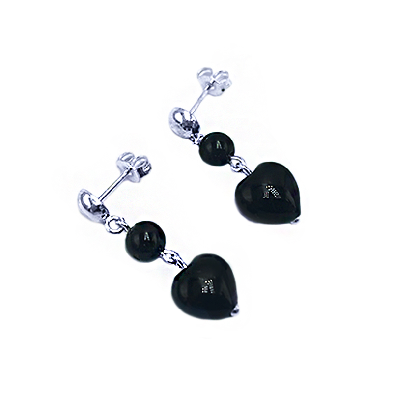 Χειροποίητα ασημένια σκουλαρίκια Μαύρος Όνυχας (καρδιά) – Ο λίθος της αντοχής και της επιμονής