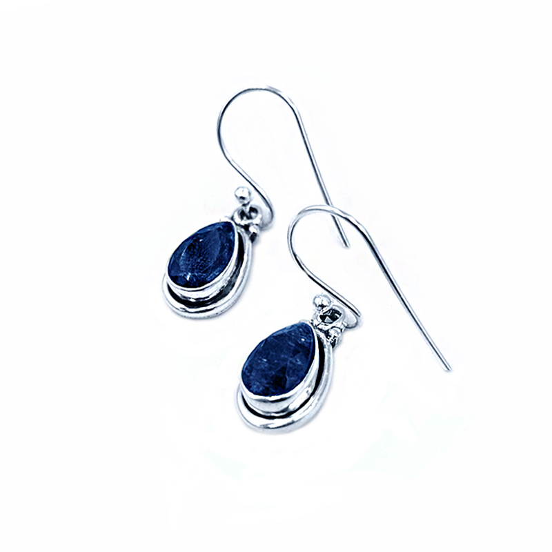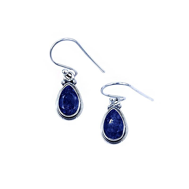 Χειροποίητα ασημένια σκουλαρίκια με Μπλε Ζαφείρι (δάκρυ 0,6 Χ 0,8cm) – Ο Βασιλικός πολύτιμος λίθος