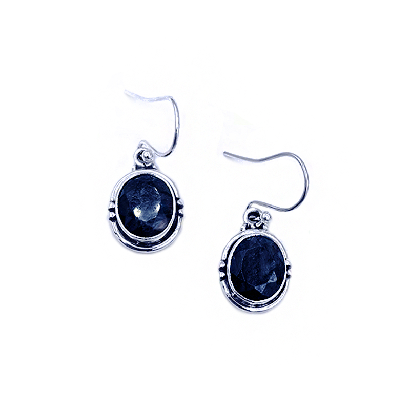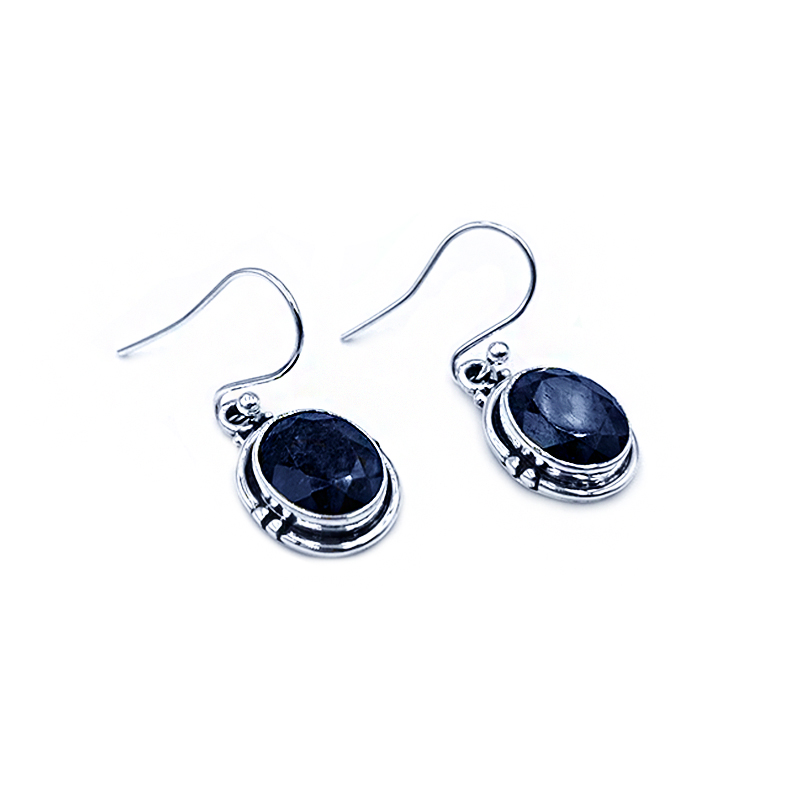 Χειροποίητα ασημένια σκουλαρίκια με Μπλε Ζαφείρι (οβάλ 1,1 Χ 0,9cm) – Ο Βασιλικός πολύτιμος λίθος