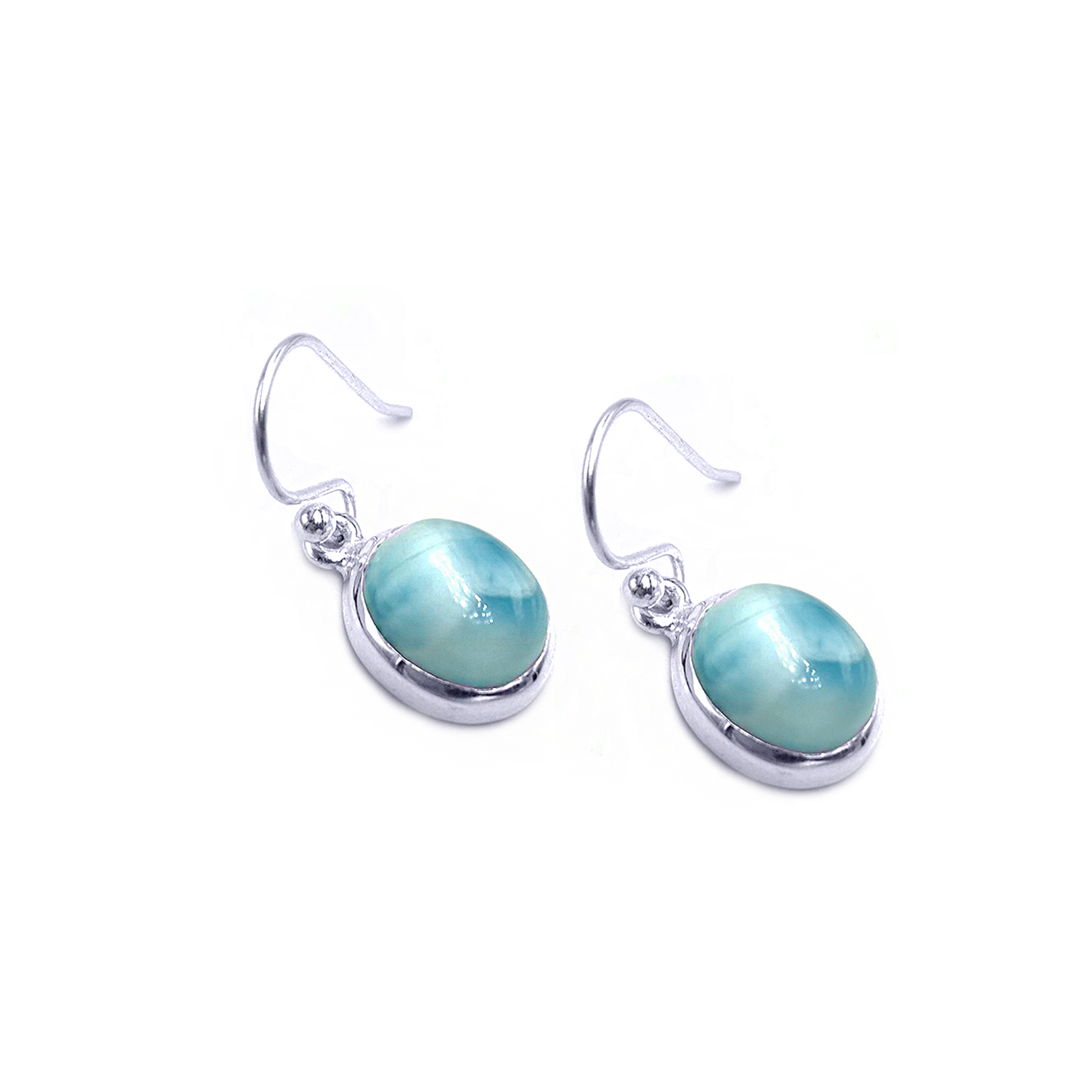 Η συχνότητα δόνησης του Λάριμαρ (Larimar)  είναι από τις υψηλότερες από οποιονδήποτε πολύτιμο λίθο. Η ενέργειά του είναι απίστευτα υψηλή, με αποτέλεσμα πολλές επιθυμητές ιδιότητες.Χειροποίητα ασημένια σκουλαρίκια με Λάριμαρ (Larimar) οβάλ eGAIA