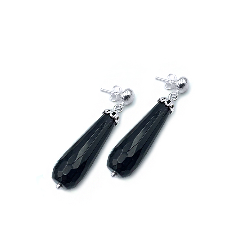 Χειροποίητα ασημένια σκουλαρίκια με Μαύρο Αχάτη