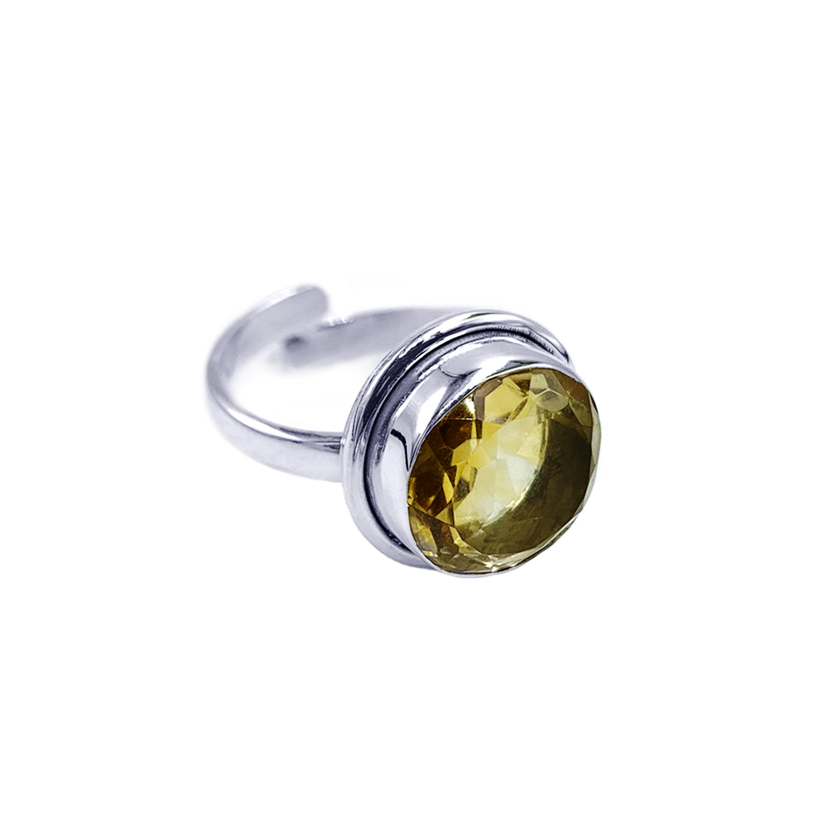 Χειροποίητο δαχτυλίδι από ασήμι 925 Κιτρίνης (Citrine) στρογγυλο (1,3cm) με ανοιχτή γάμπα για να αυξομειώνεται το μέγεθος.
