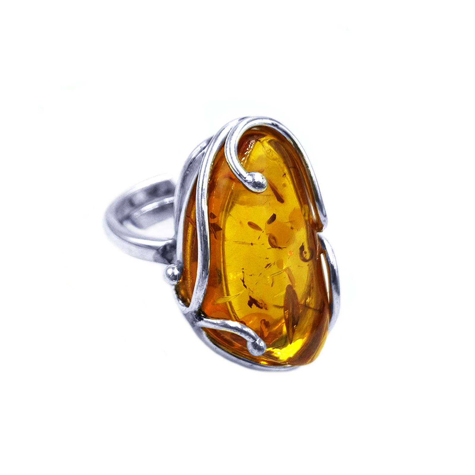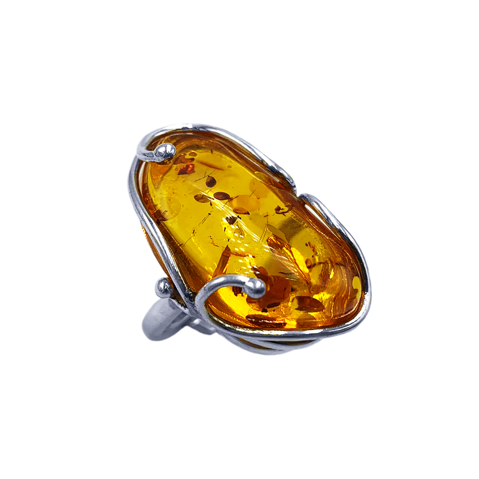 Χειροποίητο ασημένιο δαχτυλίδι με Κεχριμπάρι (2,8 Χ 1,7cm) eGAIA.gr