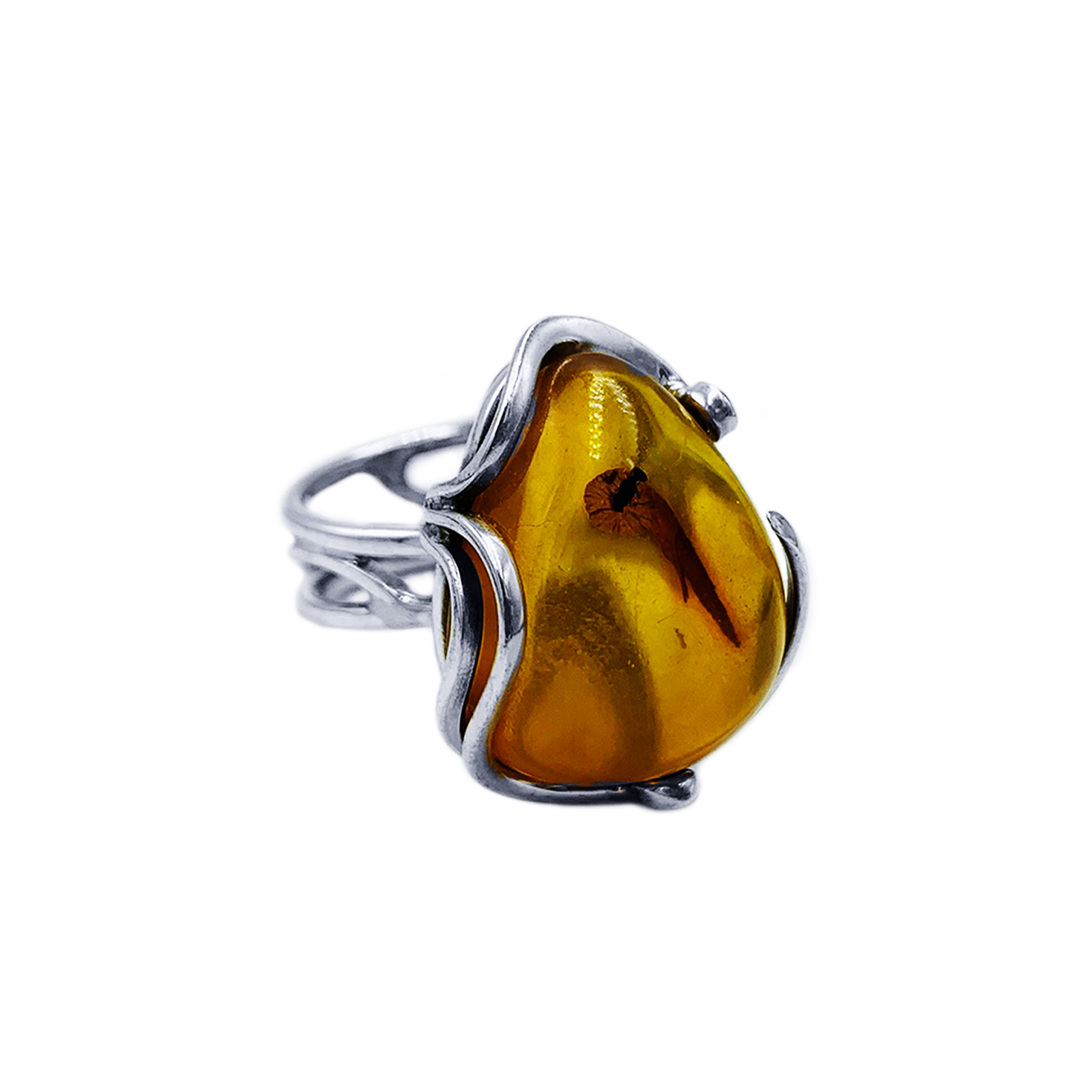 Χειροποίητο ασημένιο δαχτυλίδι με Κεχριμπάρι (2,3 Χ 1,8cm) – Ο αυτοκρατορικός λίθος