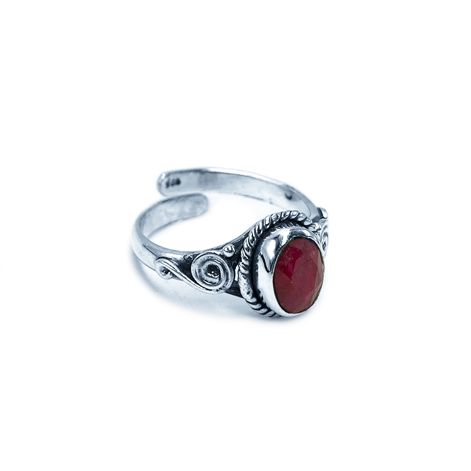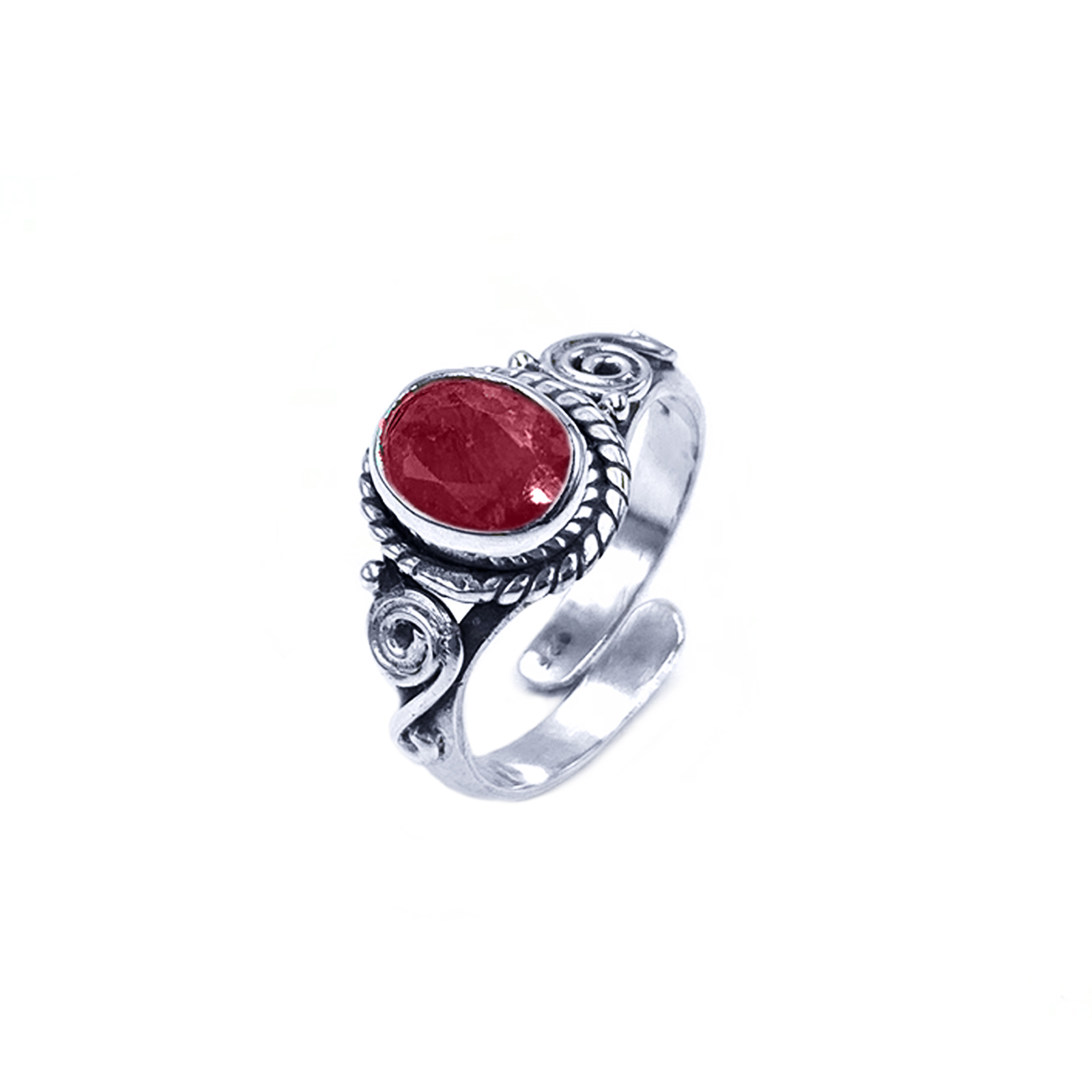 Χειροποίητο ασημένιο δαχτυλίδι με Ρουμπίνι (οβάλ ταγέ 0,9 Χ 0,7cm) και με ανοιχτή γάμπα για να αυξομειώνεται το μέγεθος.