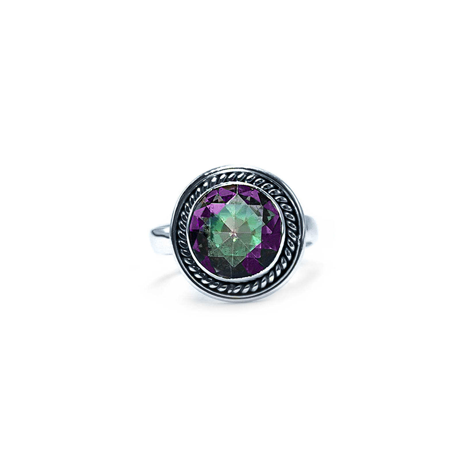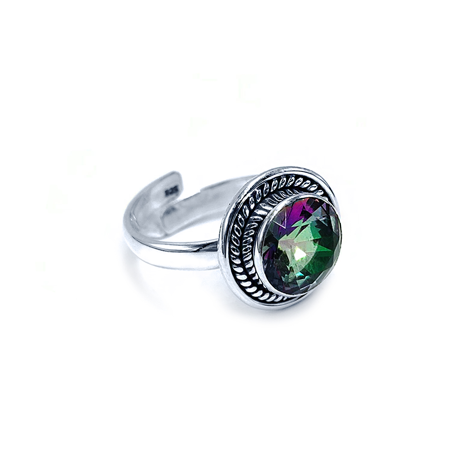 Χειροποίητο ασημένιο δαχτυλίδι με Mystic Topaz (Τοπάζι) στρογγυλο 1,0cm.