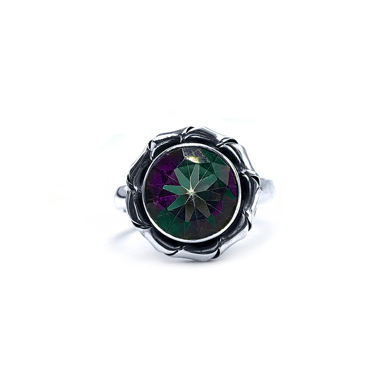 Το Mystic Topaz (Τοπάζι) έχει ένα μοναδικό εφέ διπλού τόνου που μπορεί να παρουσιάσει μια γκάμα χρωμάτων, από μωβ έως πράσινο και ακόμη και μπλε. Αυτό το πολύχρωμο εφέ είναι ασυνήθιστο και εντυπωσιακό.Χειροποίητο ασημένιο δαχτυλίδι Mystic Topaz (Τοπάζι) eGAIA
