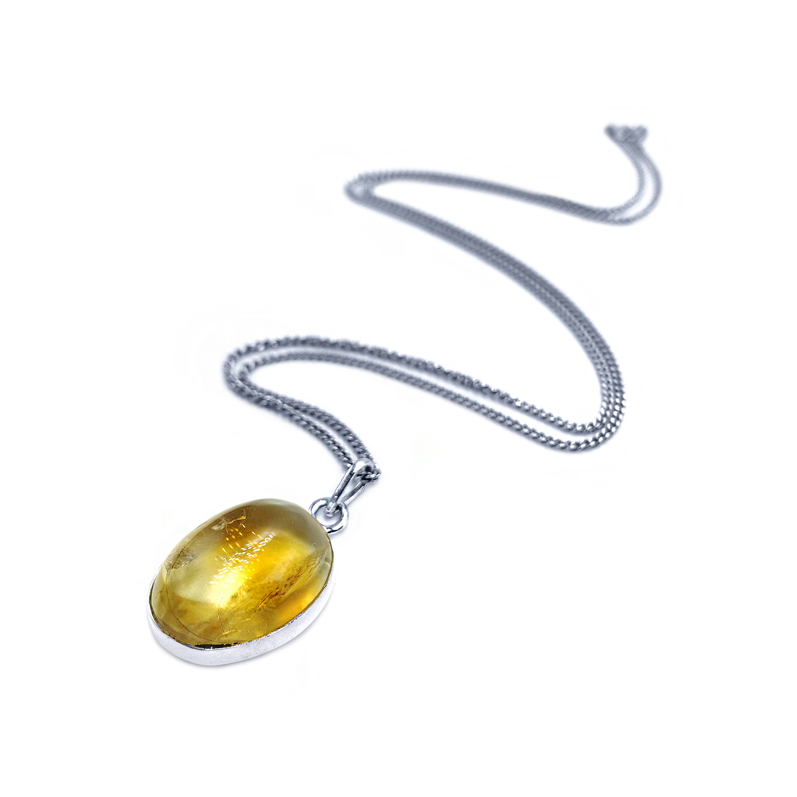 Χειροποίητο ασημένιο μενταγιόν Κιτρίνης (Citrine) οβάλ καπουσόν – Ο λίθος του πλούτου και της ευημερία