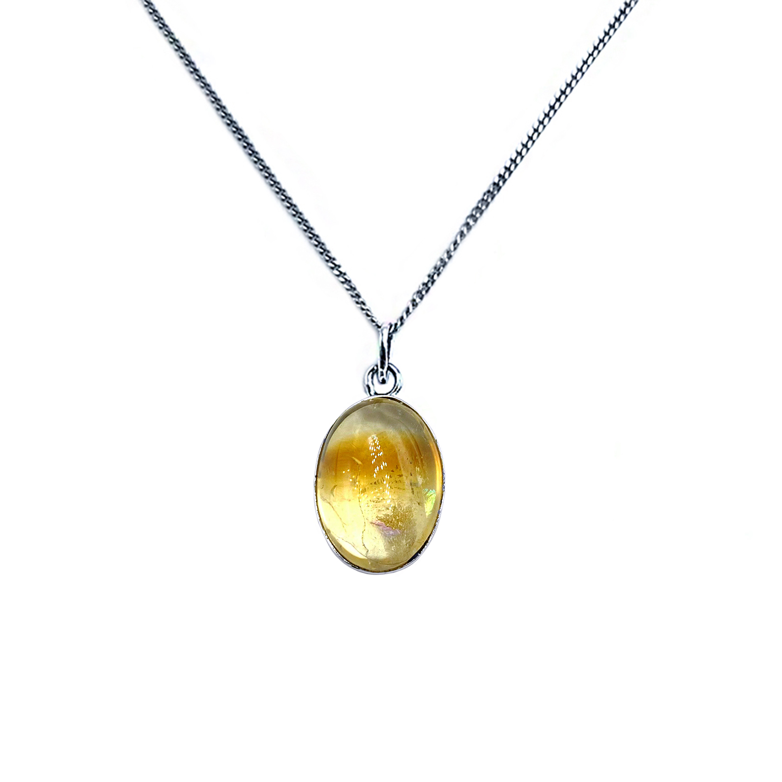 Ανήκει στην κατηγορία ορυκτών του χαλαζία. Παίρνει το χρώμα του από τα ίχνη του σιδήρου στον χαλαζία και μπορεί να είναι από ανοιχτό κίτρινο έως έντονο σκούρο κίτρινο όπως οι αποχρώσεις του κεχριμπαριού.Χειροποίητο ασημένιο μενταγιόν Κιτρίνης (Citrine) οβάλ καπουσόν eGAIA