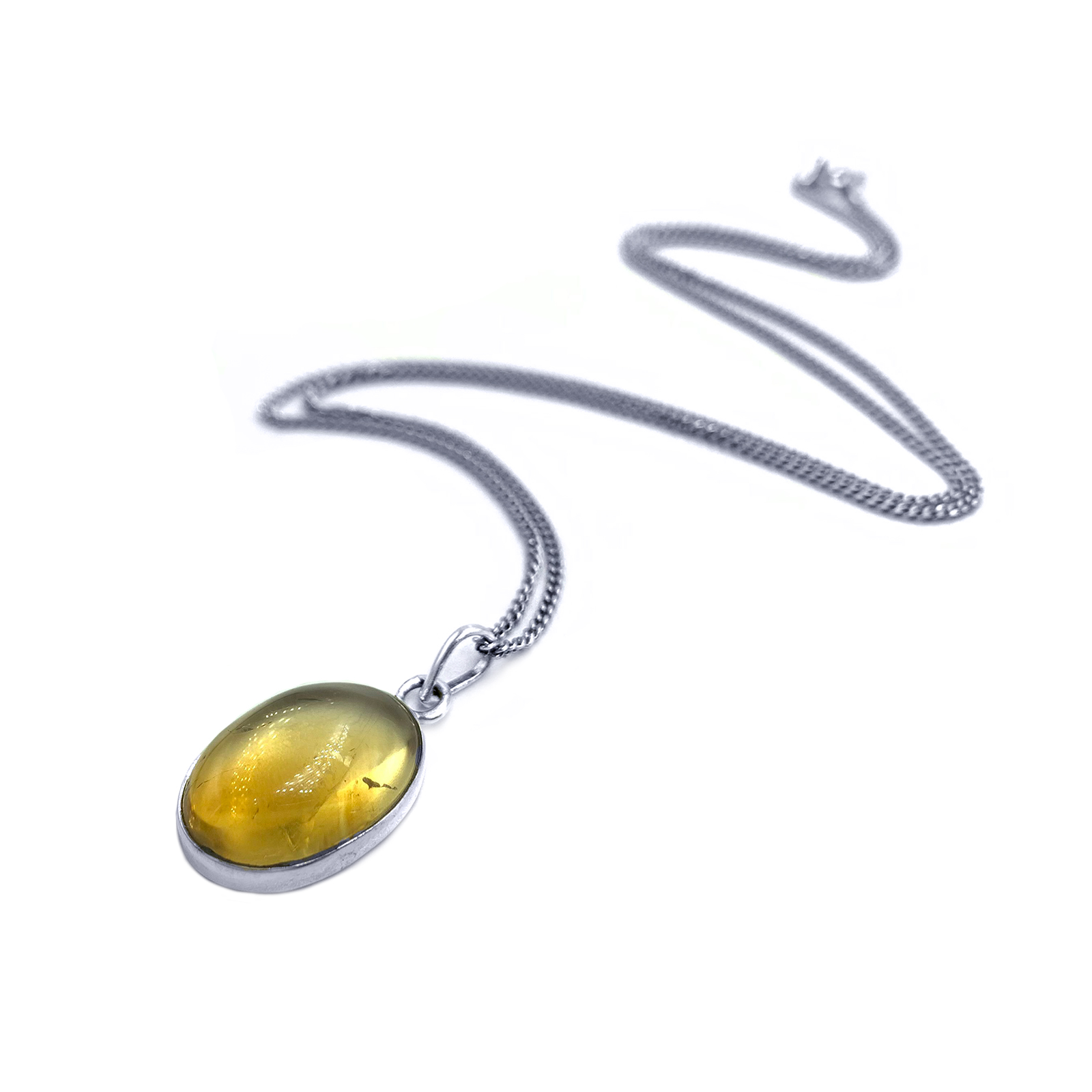 Χειροποίητο ασημένιο μενταγιόν Κιτρίνης (Citrine) οβάλ καπουσόν – Ο λίθος του πλούτου και της ευημερία