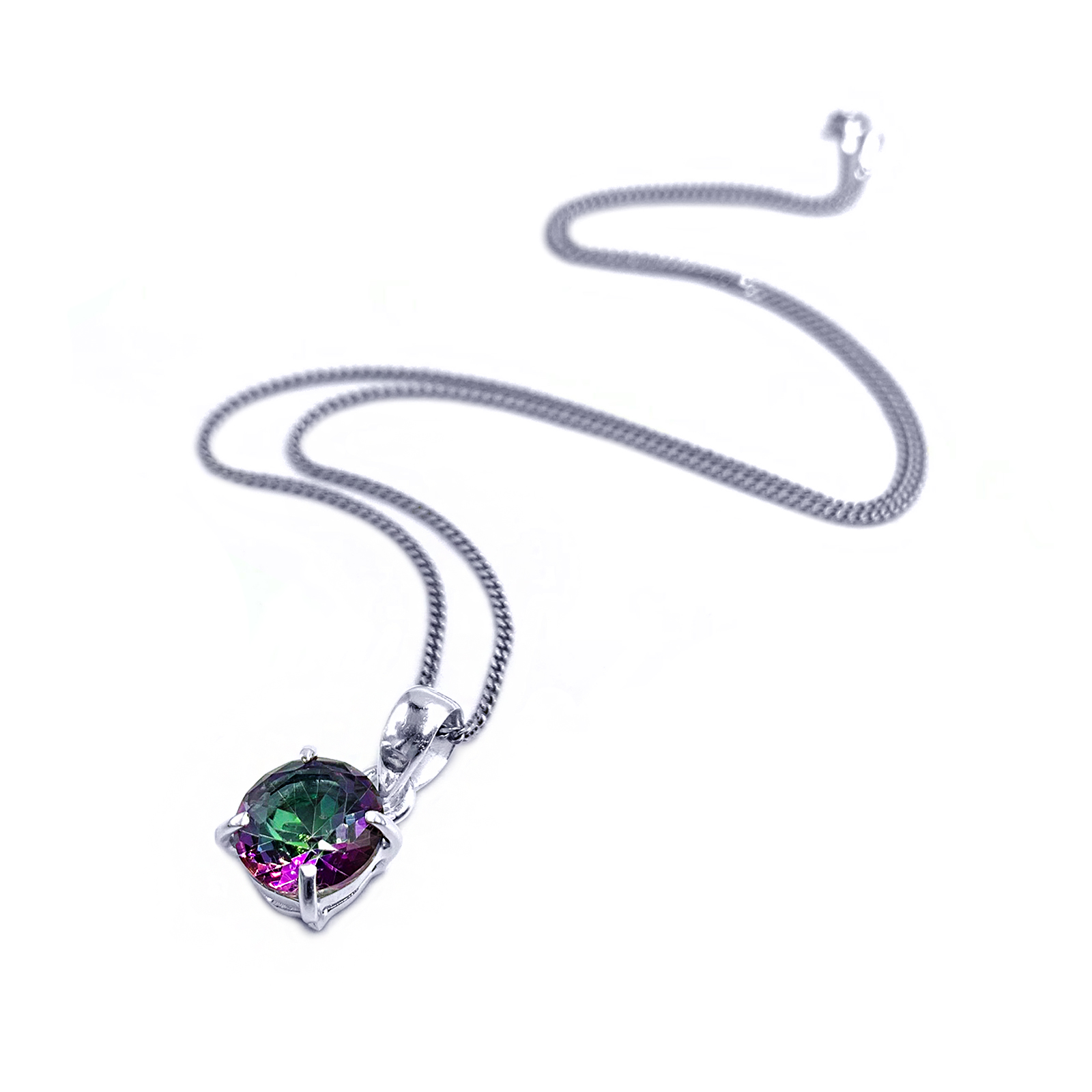 Χειροποίητο ασημένιο μενταγιόν με Mystic Topaz (Τοπάζι) στρογγυλο – Ο λίθος της συναισθηματικής θεραπείας
