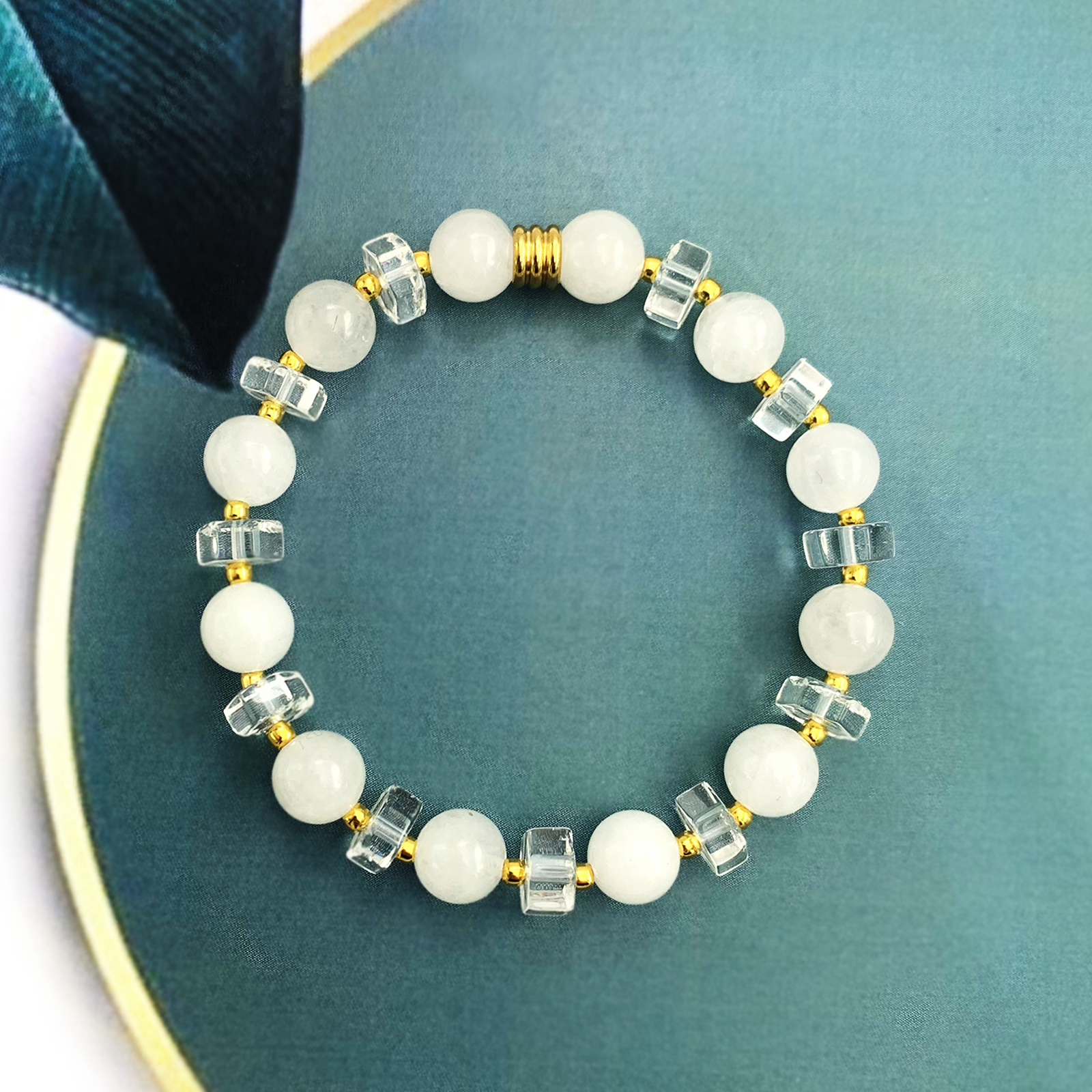Χειροποίητο βραχιόλι Λευκός Χαλαζίας και με στοιχεία από επιχρυσωμένο ατσάλι.